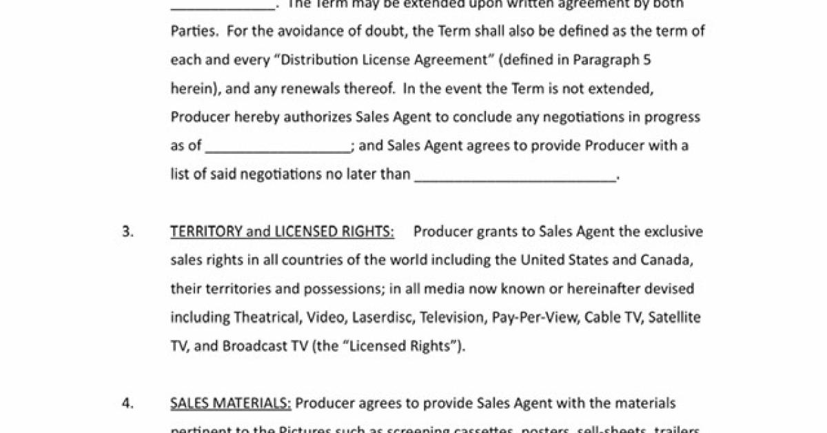 Download the 16-page contract between a film producer and a distribution sales agent to use as the base for your negotiations.